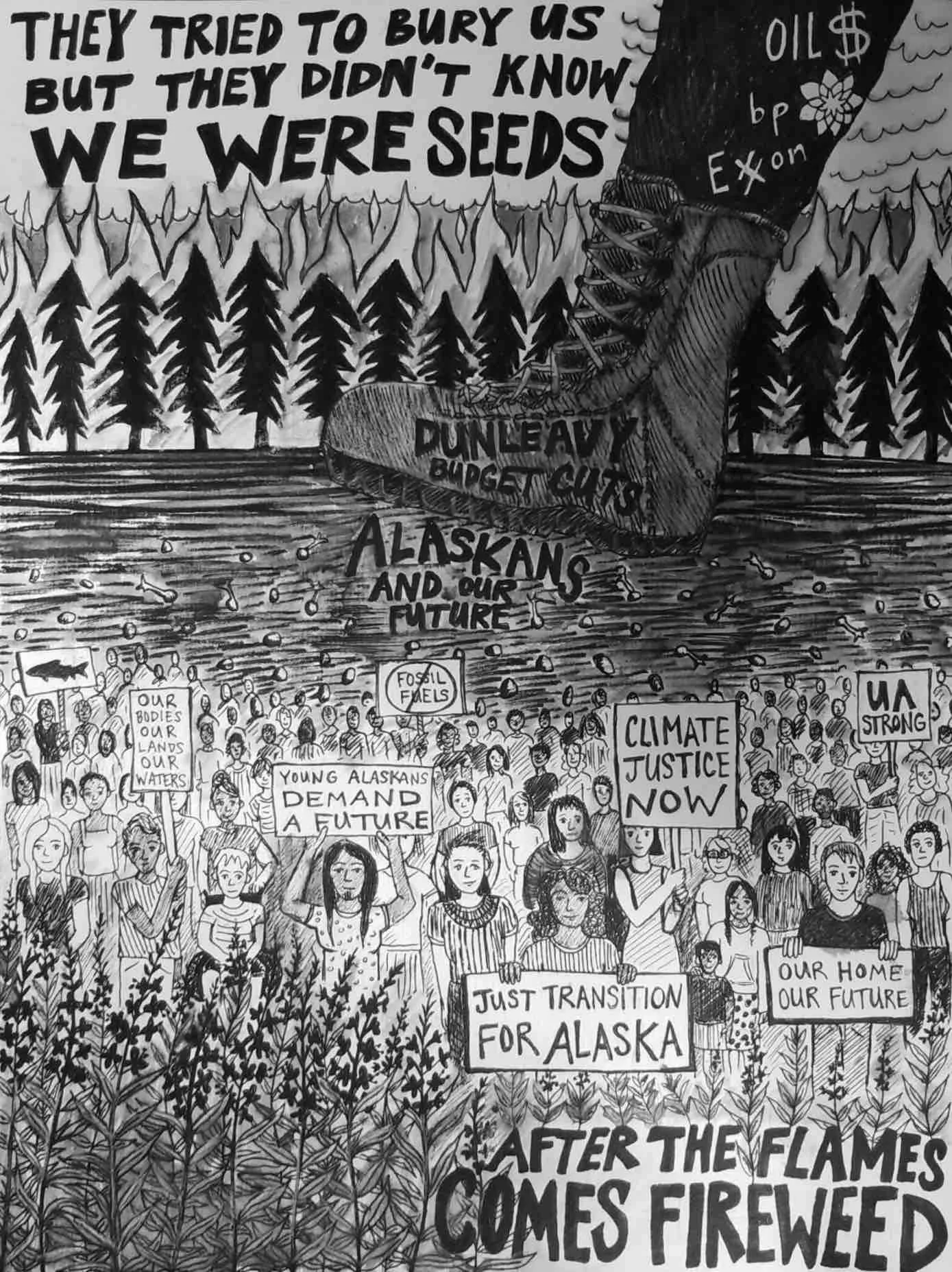 After the Flames Comes Fireweed, 2019, Pen and Ink on Paper