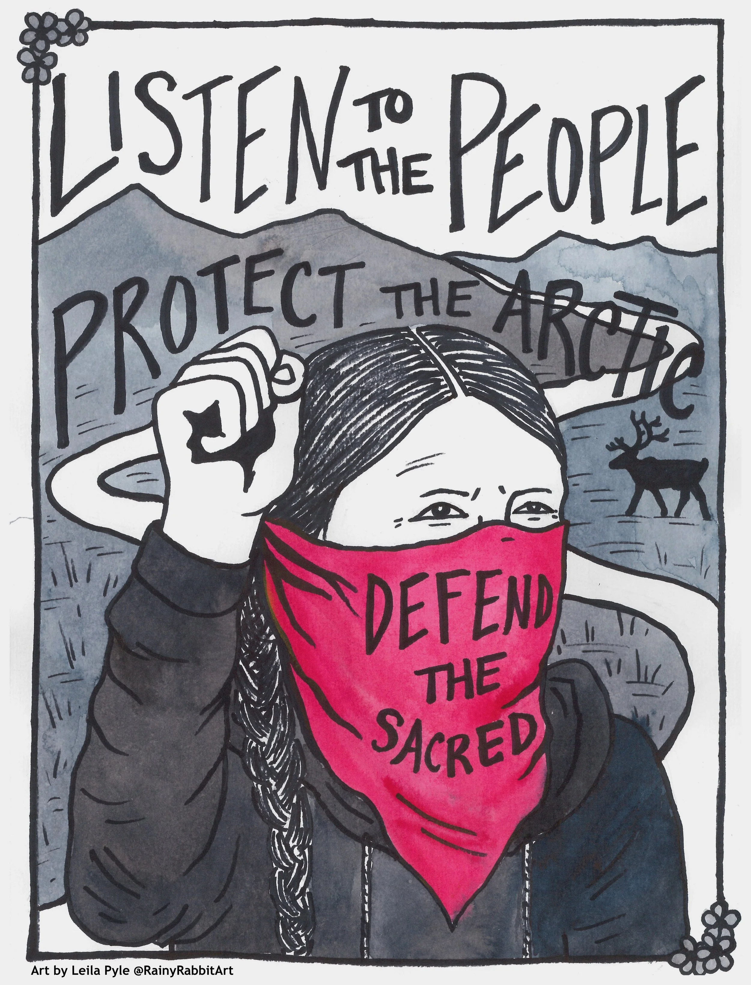 Protect the Arctic Refuge, 2018, Pen and Ink on Paper